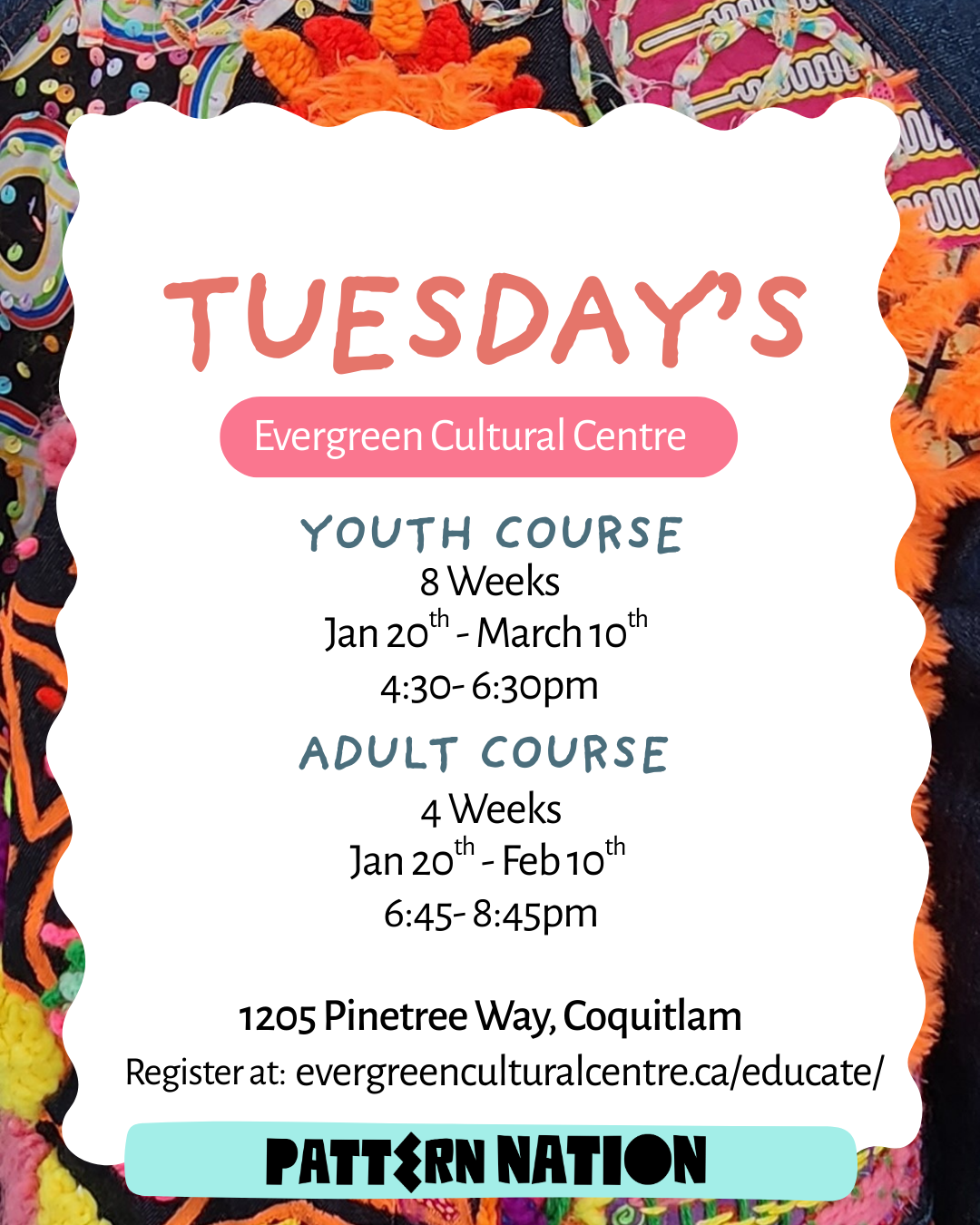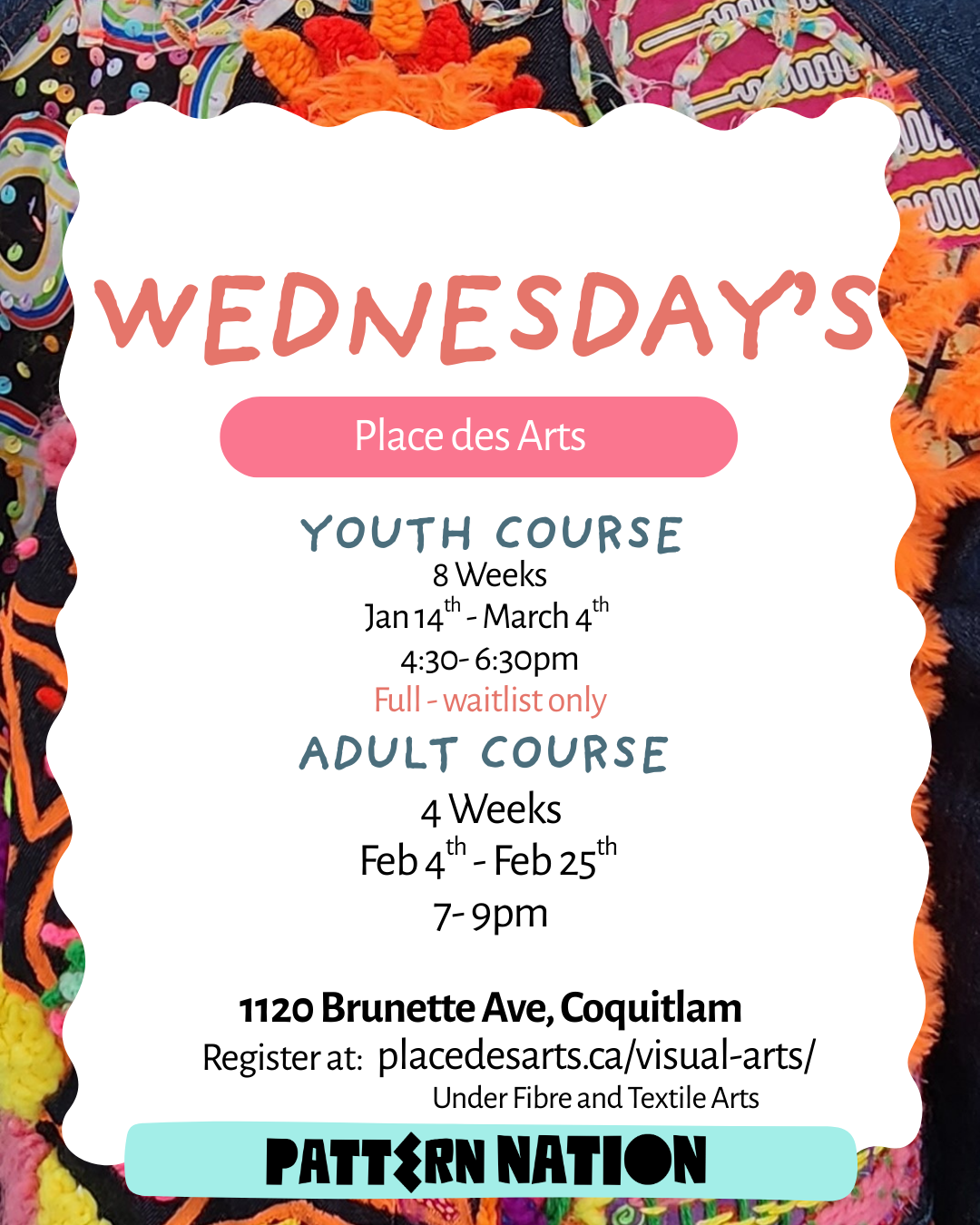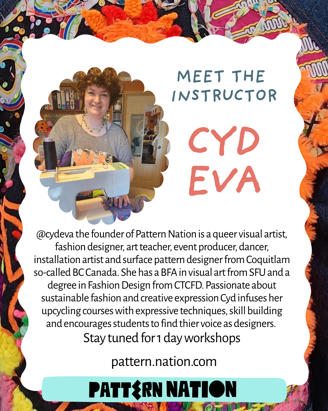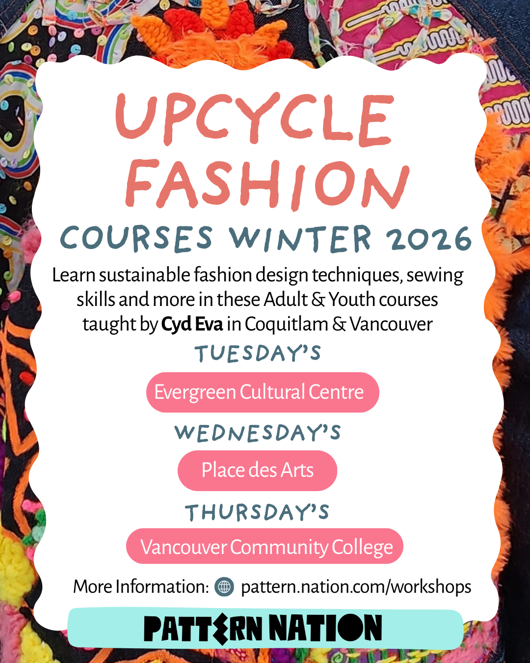 We offer art and upcycling workshops for students of all ages. Taught by Cyd Eva and Brianna Klassen we share our creative expertise to encourage students to express themselves while learning new skills. Currently Cyd is teaching Dress to Express: Upcycling Fashion and Creative Collage as well as Just for Adults pARTy, spring break, pro-d day and summer camp programs for youth at Place Des Arts in Coquitlam BC. Brianna has previously taught at UBC Camps and at the Port Moody Arts Centre and joins Cyd in facilitating our workshop offerings. Pattern Nation has led youth art series with Artstarts BC in the past and recently put together a in school upcycling workshop series for David Branken Elementary School in Surrey. If you are interested in booking us to teach a workshop/s in your community, please contact us.